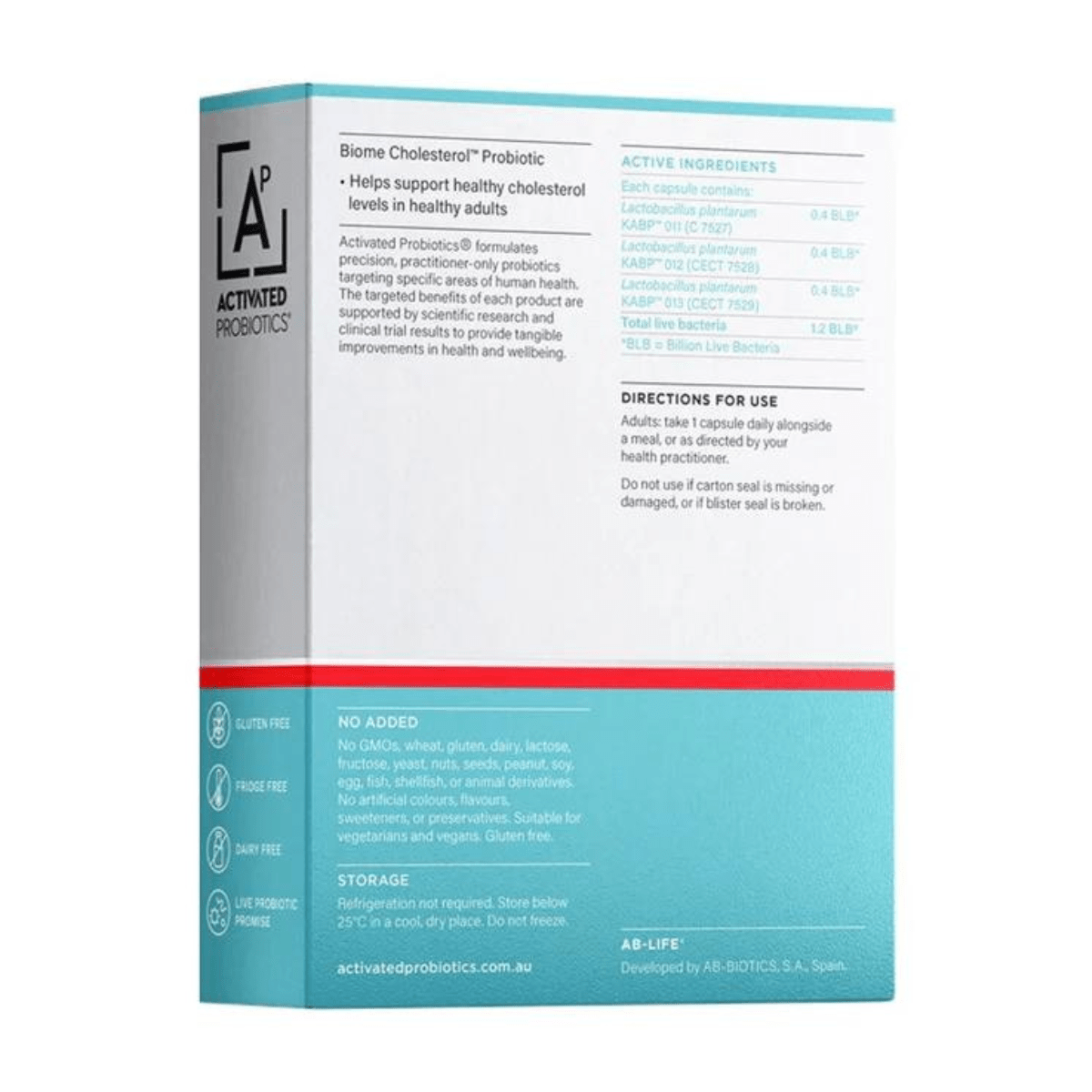 This precision probiotic formula contains three clinically studied strains of Lactobacillus plantarum (KABP™ 011, 012, and 013) to promote heart and cardiovascular health. Designed for daily use, it requires no refrigeration.