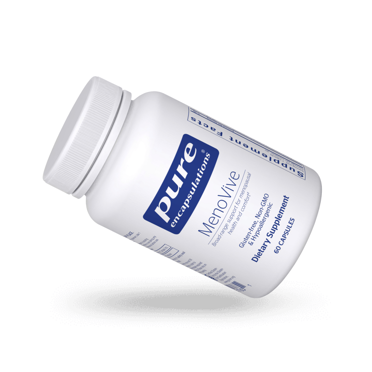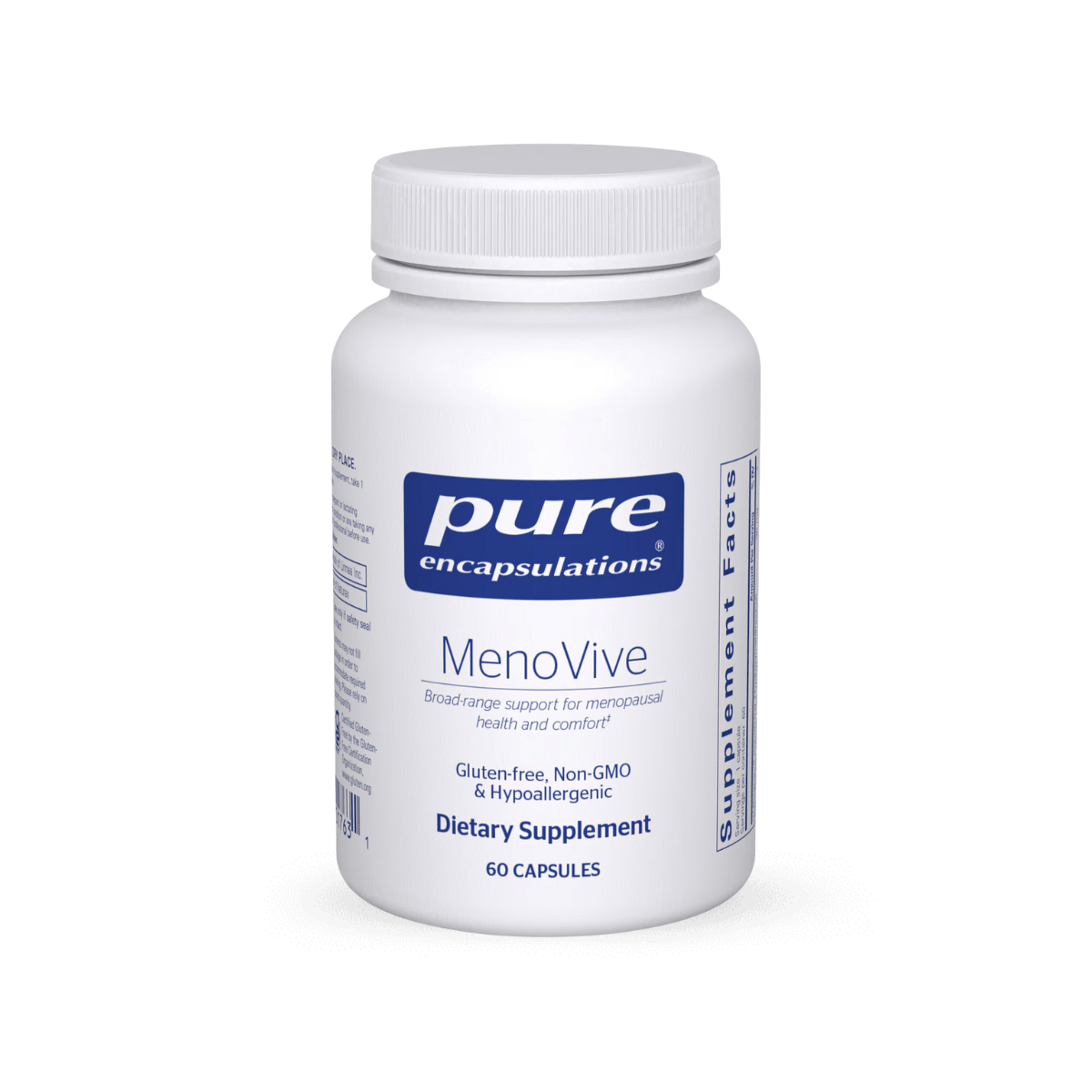 Pure Encapsulations MenoVive is a thoughtfully crafted blend designed to support women during menopause. This formula combines botanicals and nutrients to promote emotional well-being, hormonal balance, and overall health.