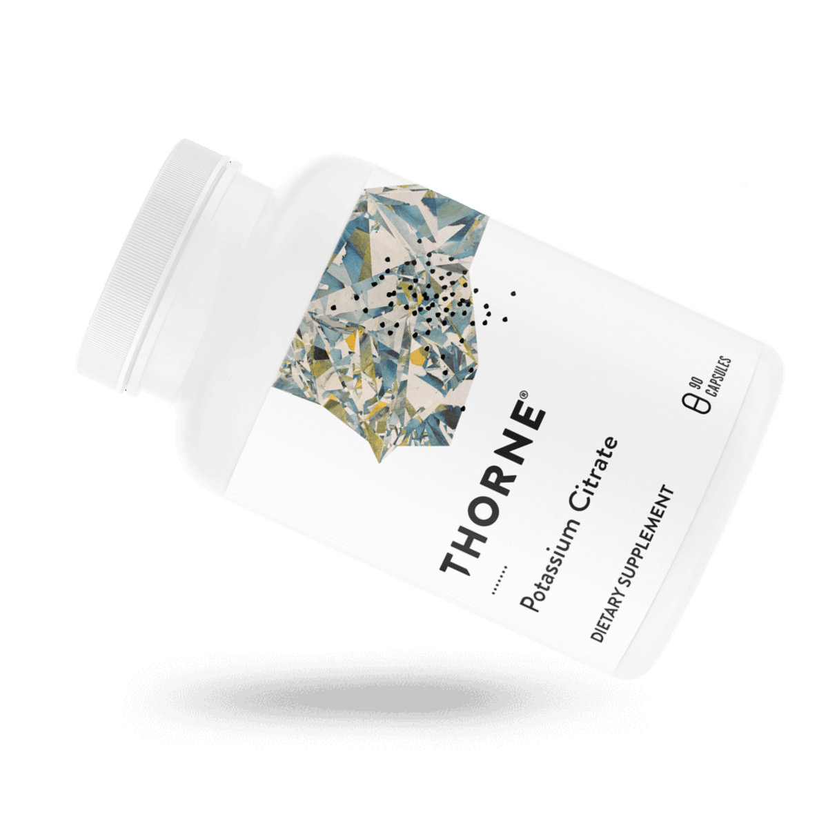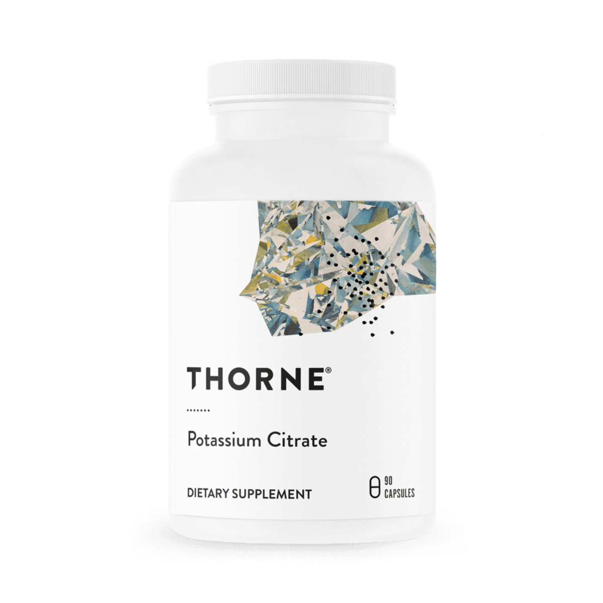 Thorne Potassium Citrate provides 99 mg of potassium per capsule to support electrolyte balance, muscle function, and cardiovascular health. Potassium is essential for maintaining proper fluid balance in the body, regulating muscle contractions, and supporting nerve function. This hypoallergenic supplement is ideal for individuals seeking to maintain overall health and prevent deficiencies in this vital mineral.
