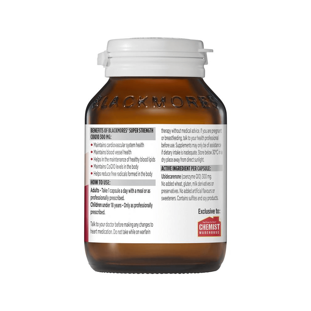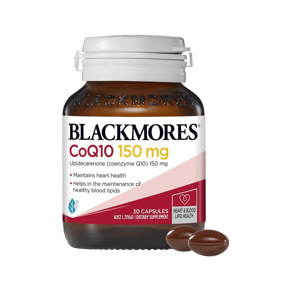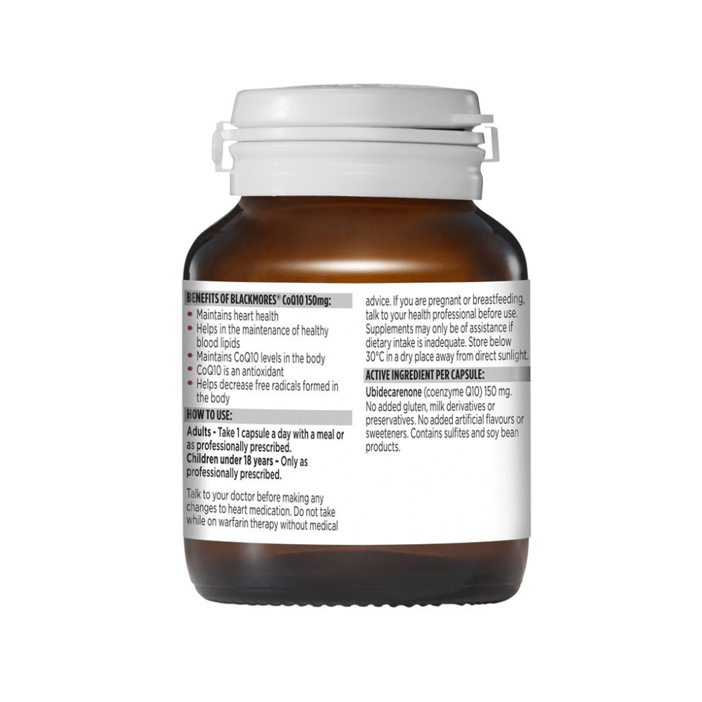 Blackmores **CoQ10 150mg** is a **high-strength source of Coenzyme Q10**, a naturally occurring antioxidant that **supports heart health** and **maintains healthy blood lipids**. As CoQ10 levels **decline with age**, supplementation can help **support cardiovascular function and reduce free radical damage**.
