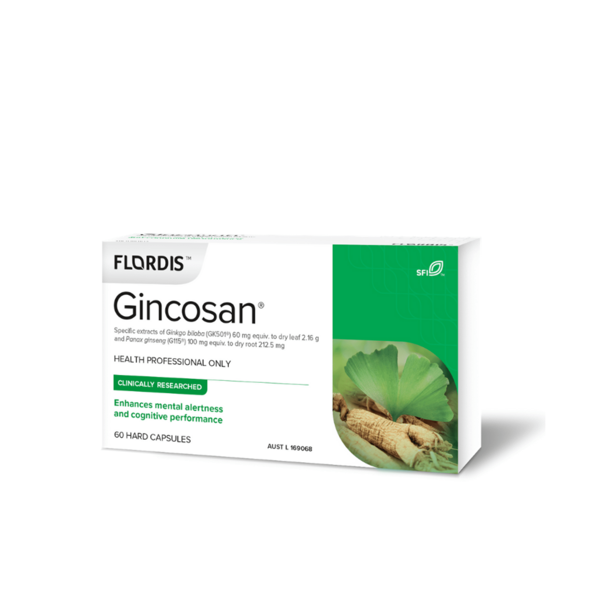 Gincosan combines the clinically researched extracts of Ginkgo biloba (GK501) and Panax ginseng (G115) to support brain function, ease mental fatigue, and improve circulation, especially to peripheral areas. Ideal for those feeling mentally and physically drained from work or study demands.