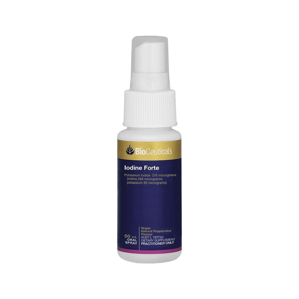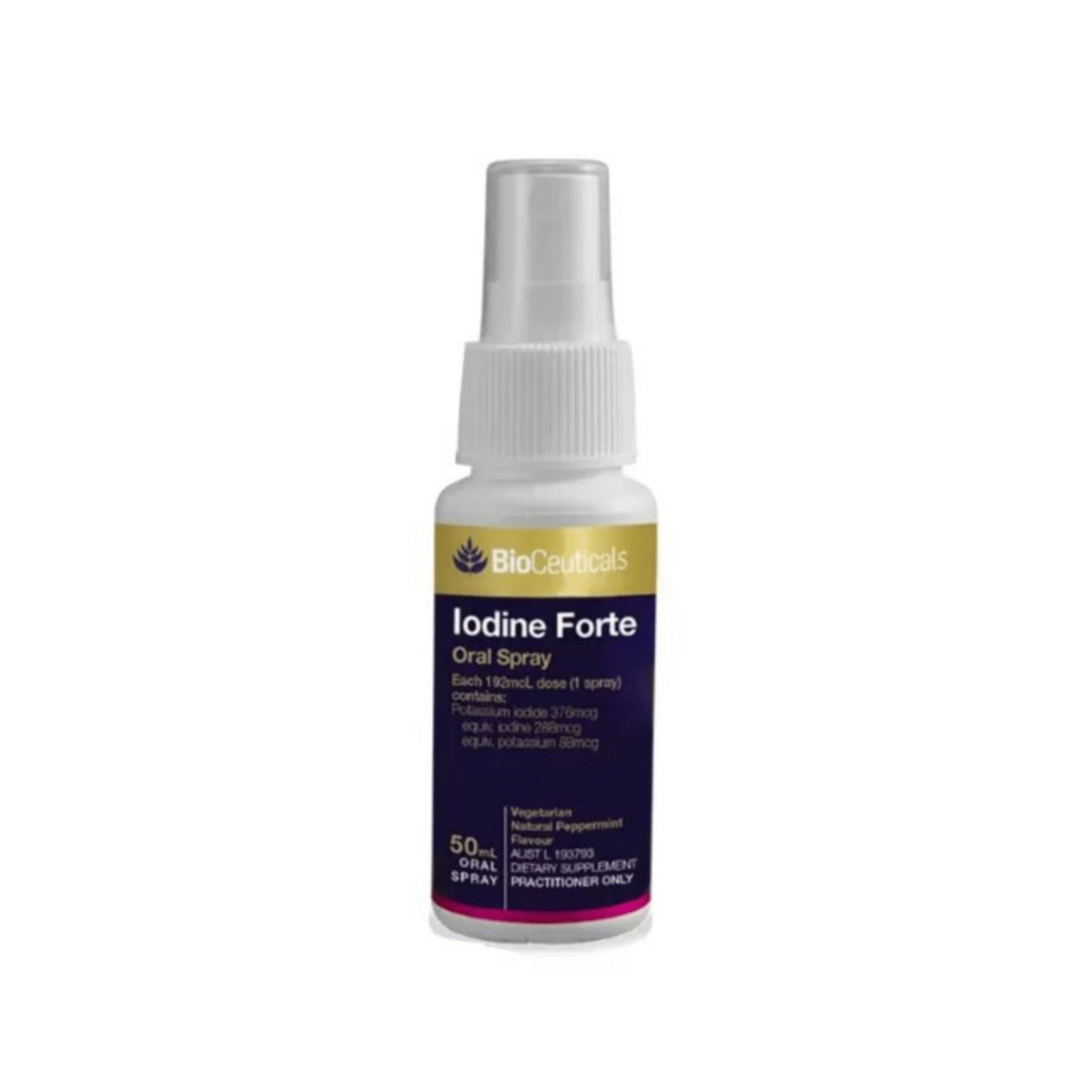 Iodine Forte is a refreshing peppermint-flavoured oral spray that supports healthy thyroid gland function and healthy thyroid hormones. It helps to maintain iodine levels in the body and aids thyroid hormone production. For more detailed information on the importance of iodine in thyroid health.